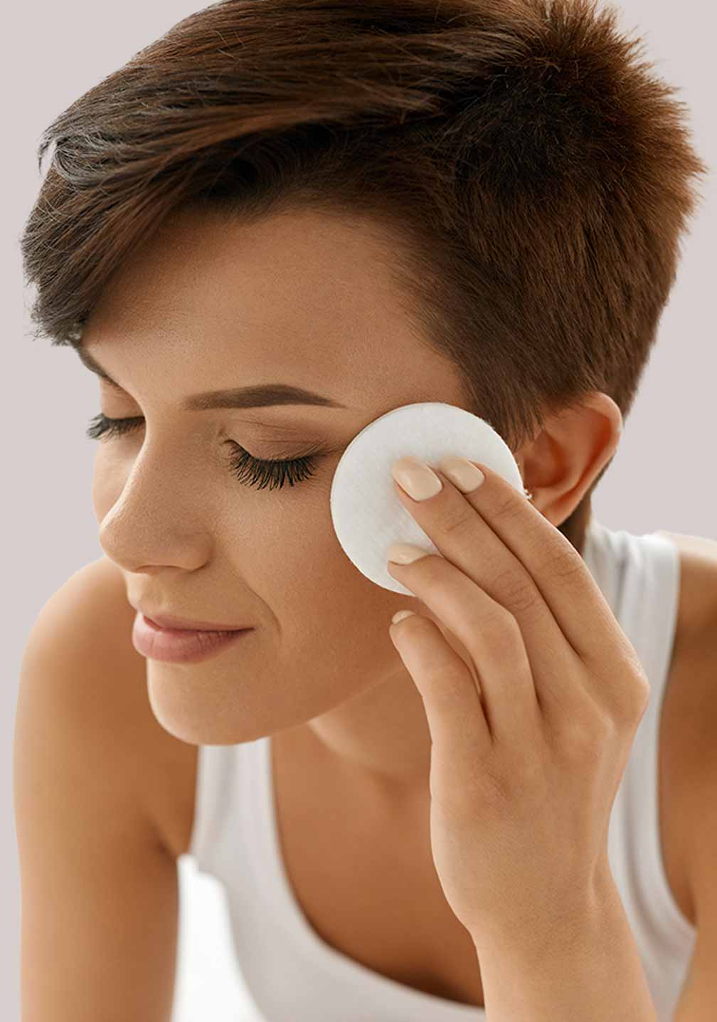 Nach der Gesichtsreinigung Wattepad mit Tonic tränken und über Gesicht, Hals und Dekolleté streichen.